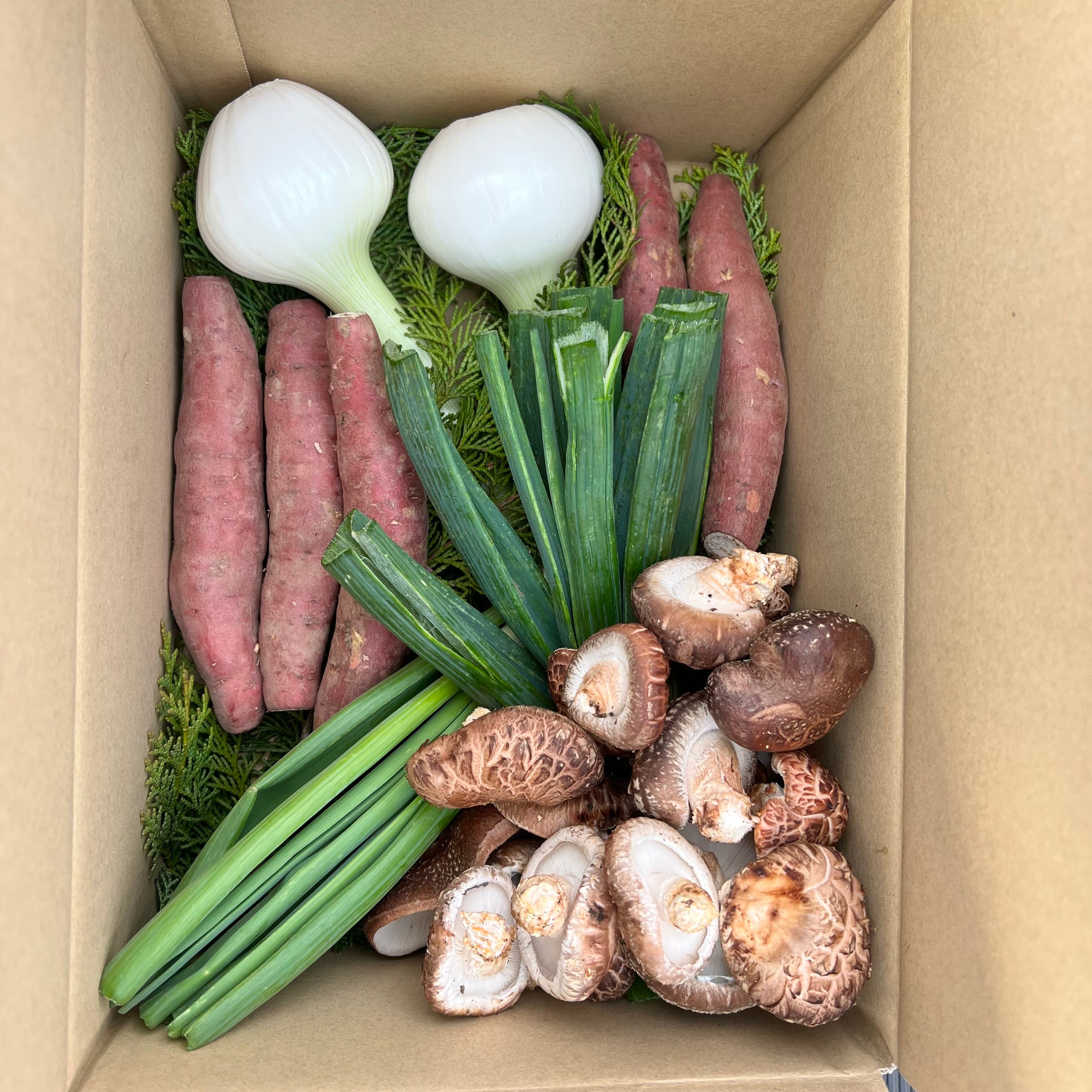 原木椎茸500g+紅はるか500g+新玉ねぎ500g
